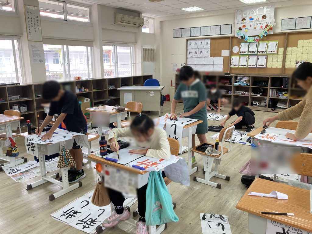 書写の授業で、字を書くポイントを学び、冬休み中に自宅でも練習を行いました。